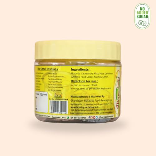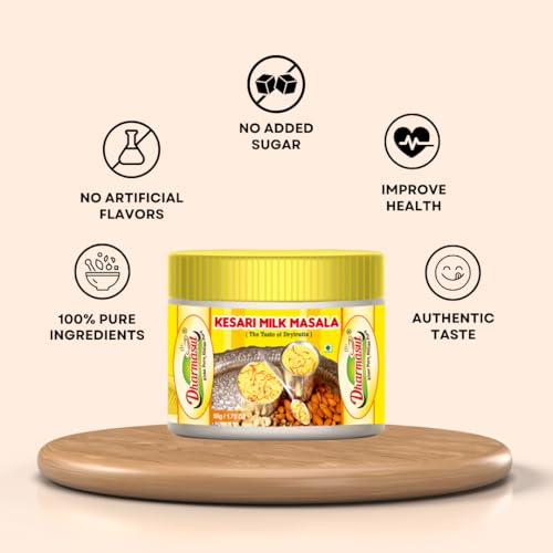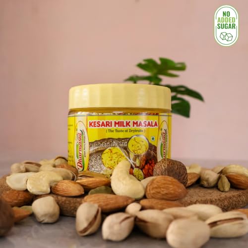 Dharmasut milk masala powder is well famous and rich in ingredients. Dharmasut Kesari Milk Masala is made from the finest and purest dry fruits including Badam Cashew Nuts Pista Mace Cardamom Synthetic Food Nutmeg and Saffron. Kesar Milk masala will give you the most astonishing taste and make you crave for milk every time. Milk masala powder is flavoured with kesar. The addition of milk masala powder with kesar doesn’t just make the milk taste a lot yummier but it also comes with a lot of health benefits which is great for your memory treats insomnia and softens the skin by regular consumption of this powder. Generally children do not like milk but adding our dudh masala powder will always make them crave for tastier milk. You can also use kesar badam milk masala powder while making Rabdi Kheer Barfi Halva Kesar Kulfi and other delicious sweets. Try our High Quality Milk Masala Powder once and make your sweets a lot delightful.