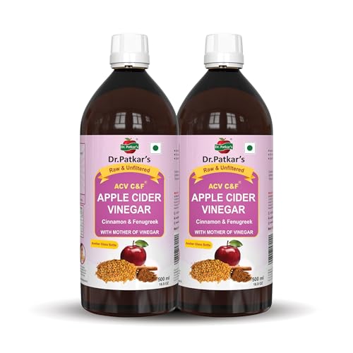 Dr. Patkar's Apple Cider Vinegar with Cinnamon & Fenugreek | Unfiltered & Undiluted | Suitable for Sugar Control with Improved Immunity & Lowers Bad Cholesterol (With Mother) 1000ML