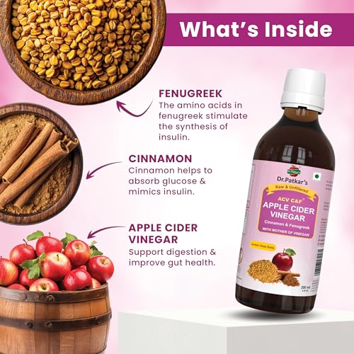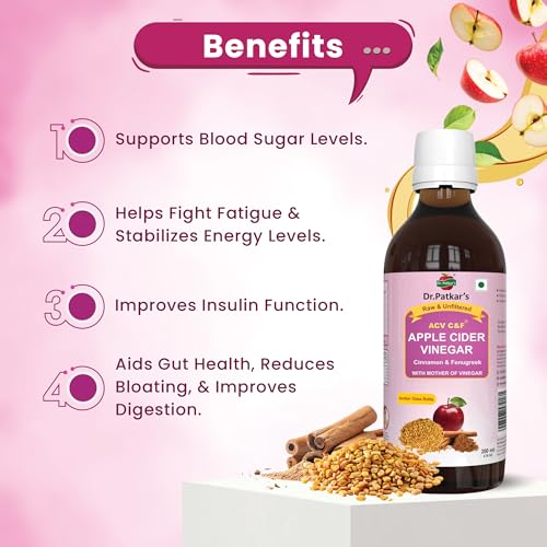 Dr. Patkar's Apple Cider Vinegar with Cinnamon & Fenugreek | Unfiltered & Undiluted | Suitable for Sugar Control with Improved Immunity & Lowers Bad Cholesterol (With Mother) 200ml