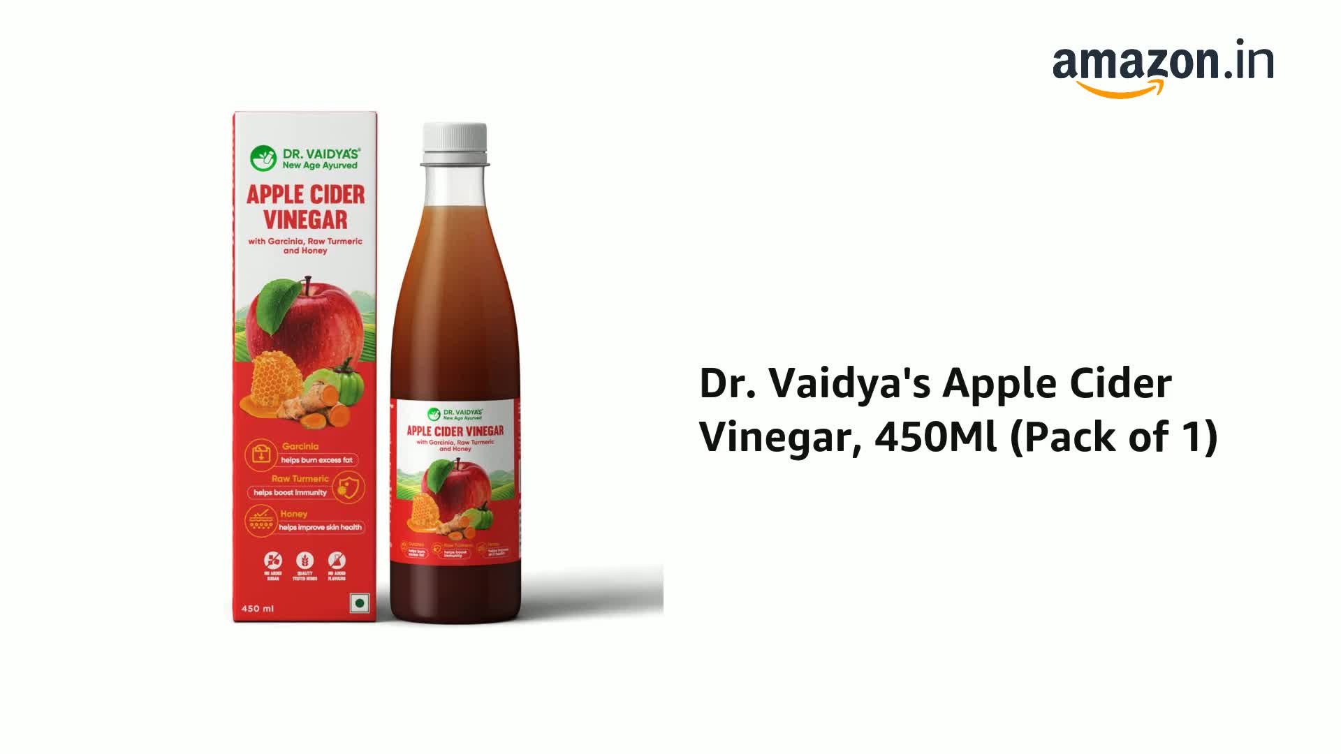 Dr. Vaidya's Apple Cider Vinegar Juice | Weight Management, Skin & Hair Health | 6 Super Herbs: Garcinia, Raw Turmeric & Honey | Vegan & Gluten-Free | (450ml) - Pack of 1