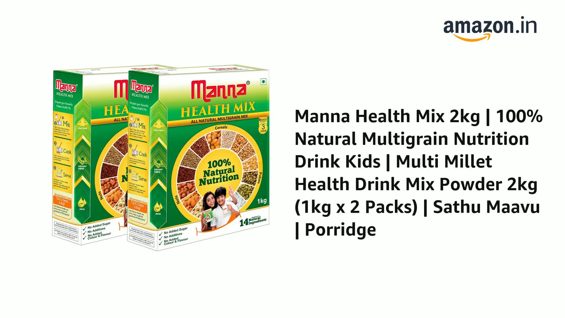 Manna Health Mix 2kg | 100% Natural Multigrain Nutrition Drink Kids | MultMillet Health Drink Mix Po