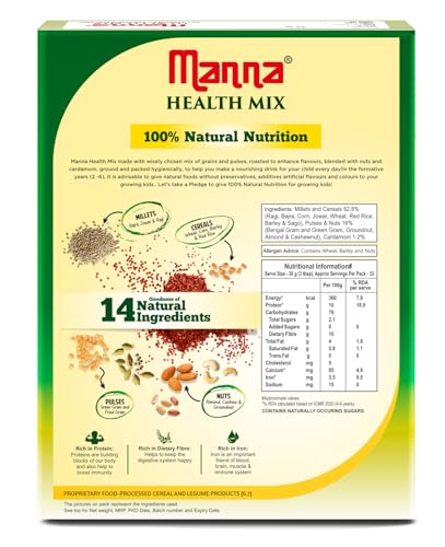 Manna Health Mix 300g, All Natural Kids Nutrition Drink, with 14 ingredients, Zero Sugar. 100% Natural Nutrition
