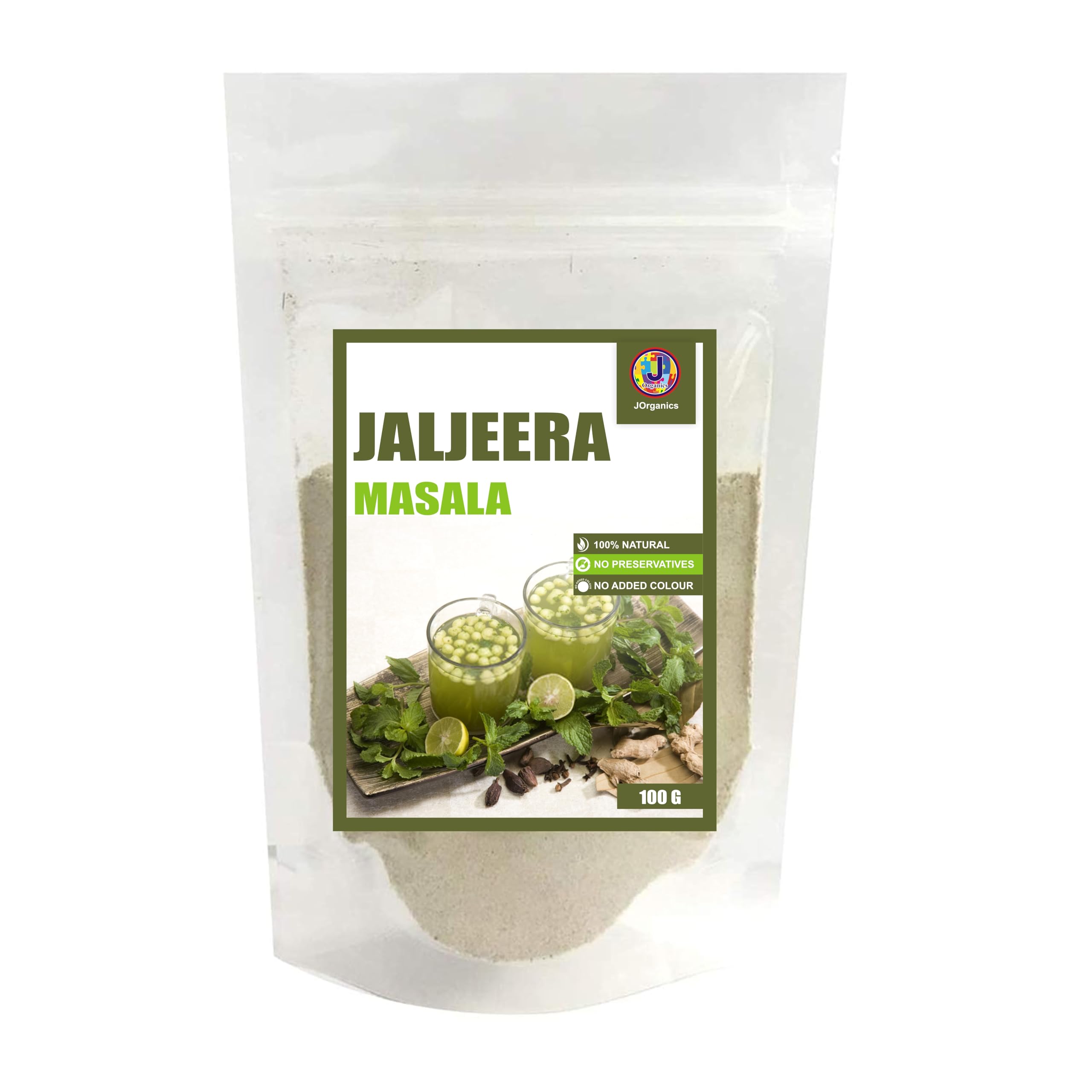 JOrganics Jaljeera Masala is a ready-to-make water cooler. Jaljeera aids in digestion and often served as a welcome drink. JOrganics Jaljeera powder is made with advanced technology which retains the flavor and aroma of spices in their original state. Best paired with cold water. Jaljira powder is a mix of the finest quality ingredients like cumin pepper asafetida black salt dry ginger mint and other ingredients. The refreshing and appetizing powder can be added and mixed with other drinks to give a new twist and flavor.*24x7 service available