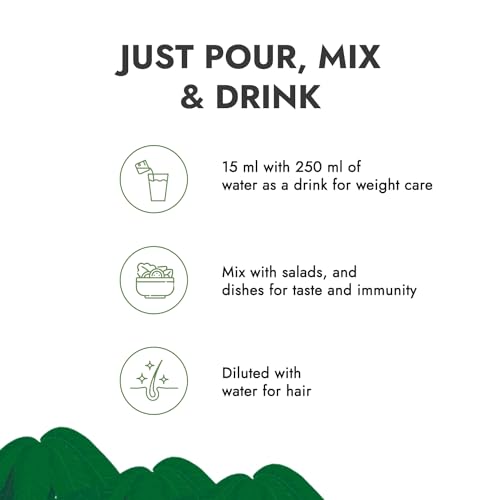 • 10 ML ON AN EMPTY STOMACH: Apple Cider Vinegar can have a strong taste and aroma due to its raw unfiltered nature. Therefore the best way to consume it is to dilute 10 ML Apple Cider Vinegar and consume daily on an empty stomach for maximized benefits.
