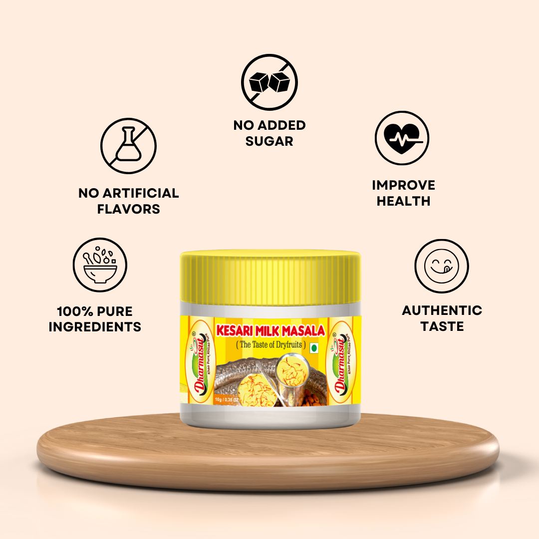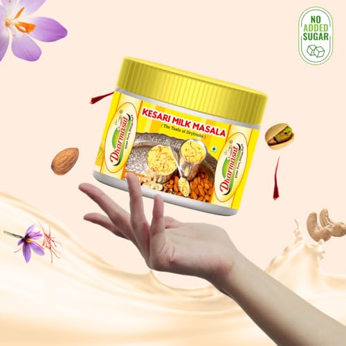 Dharmasut milk masala powder is well famous and rich in ingredients. Dharmasut Kesari Milk Masala is made from the finest and purest dry fruits including Badam Cashew Nuts Pista Mace Cardamom Synthetic Food Nutmeg and Saffron. Kesar Milk masala will give you the most astonishing taste and make you crave for milk every time. Milk masala powder is flavoured with kesar. The addition of milk masala powder with kesar doesn’t just make the milk taste a lot yummier but it also comes with a lot of health benefits which is great for your memory treats insomnia and softens the skin by regular consumption of this powder. Generally children do not like milk but adding our dudh masala powder will always make them crave for tastier milk. You can also use kesar badam milk masala powder while making Rabdi Kheer Barfi Halva Kesar Kulfi and other delicious sweets. Try our High Quality Milk Masala Powder once and make your sweets a lot delightful.
