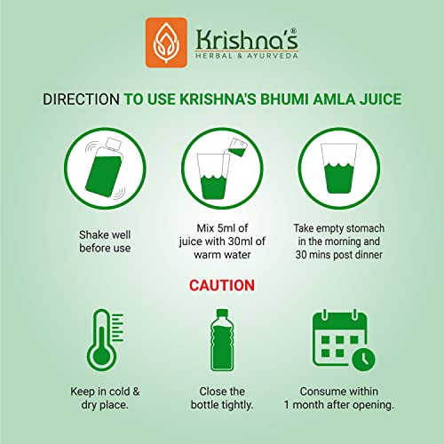 Krishna's Bhumi amla is well known for cleansing the liver and its complete detoxification. Bhumi Amla Juice is a natural product for general health. It is an organic and herbal product. Bhumi amla is a natural remedy long used in Ayurveda. It is a powerful antioxidant, widely used in Ayurveda for its profound health benefits on the liver. It helps detox and strengthen the liver and is also known to help maintain a healthy spleen.