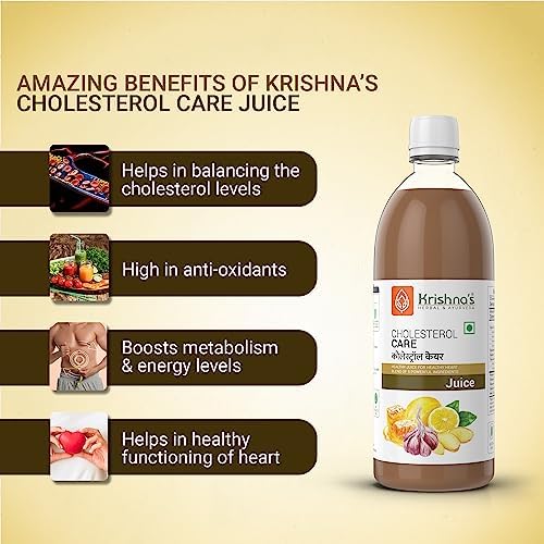 KRISHNA's HERBAL & AYURVEDA Cholesterol Care Juice - 500 Ml | Contains Honey With Apple Cider Ginger Garlic Sugar Free Health Drink