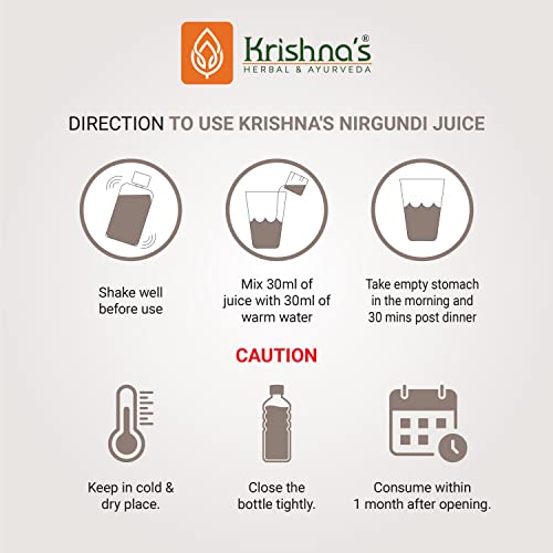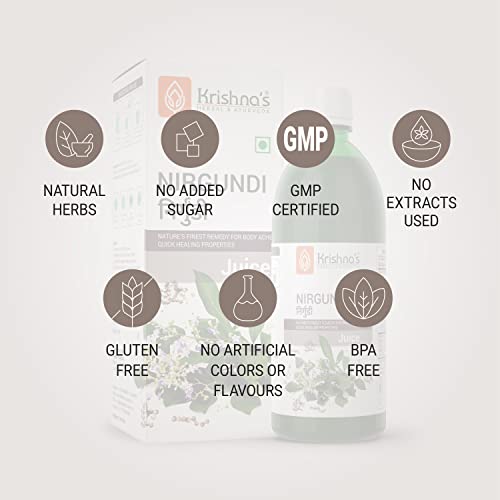 Krishna's nirgundi swaras is beneficial in hands legs and back ache various types of pain. Helps reduce inflammation and swelling of joints. It is anti-inflammatory anti spasmodic and analgesic. Key ingredients: nirgundi kwatha 100 percent with permitted class ii preservatives.