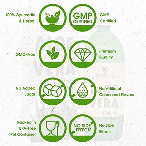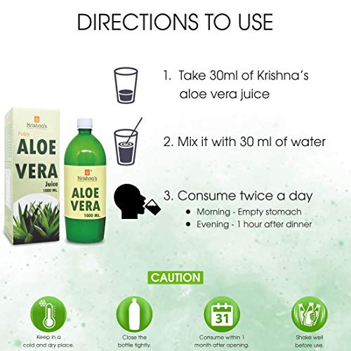 Krishna's aloevera juice helps maintain smooth radiant skin and promotes hair growth beneficial in acne pimples and skin related allergies