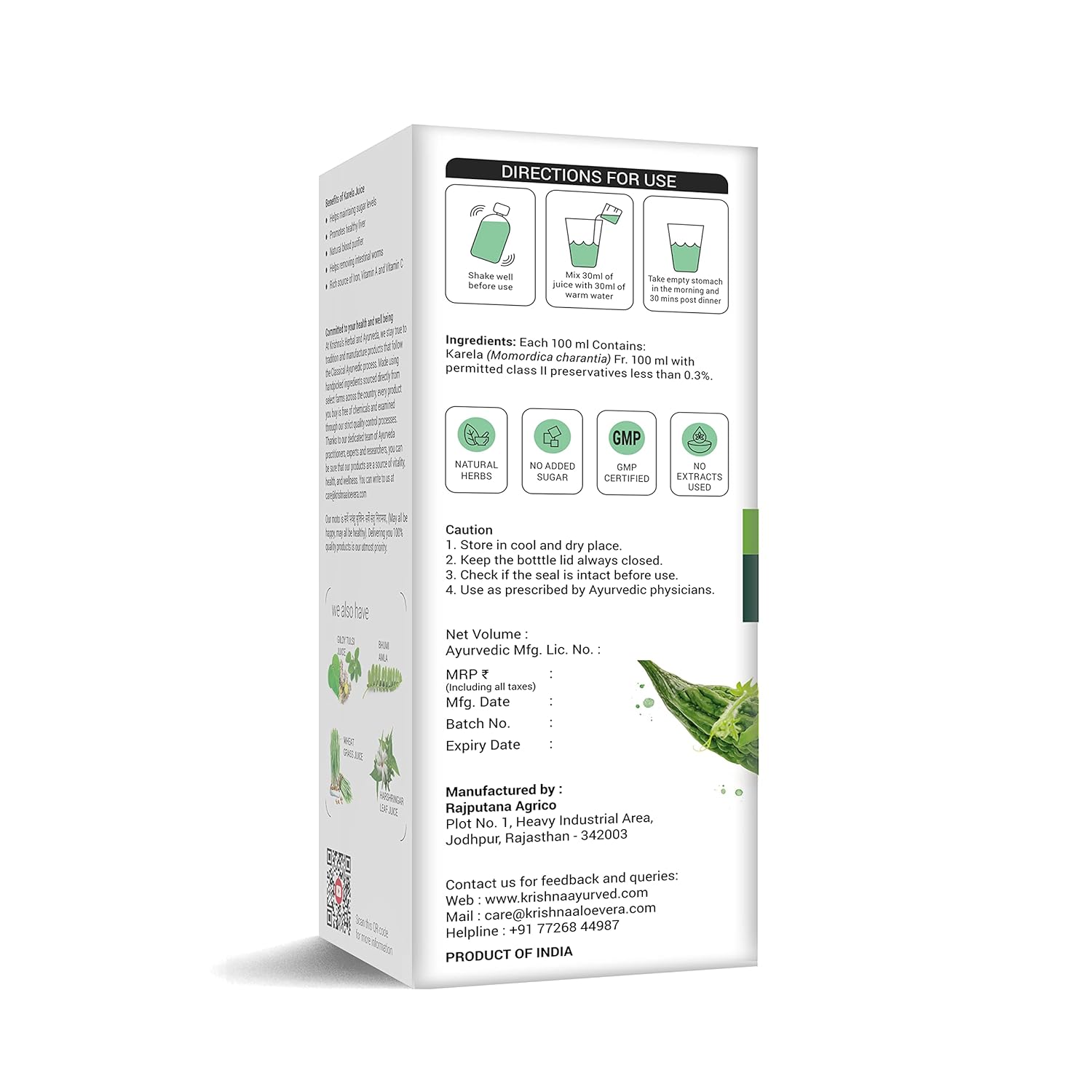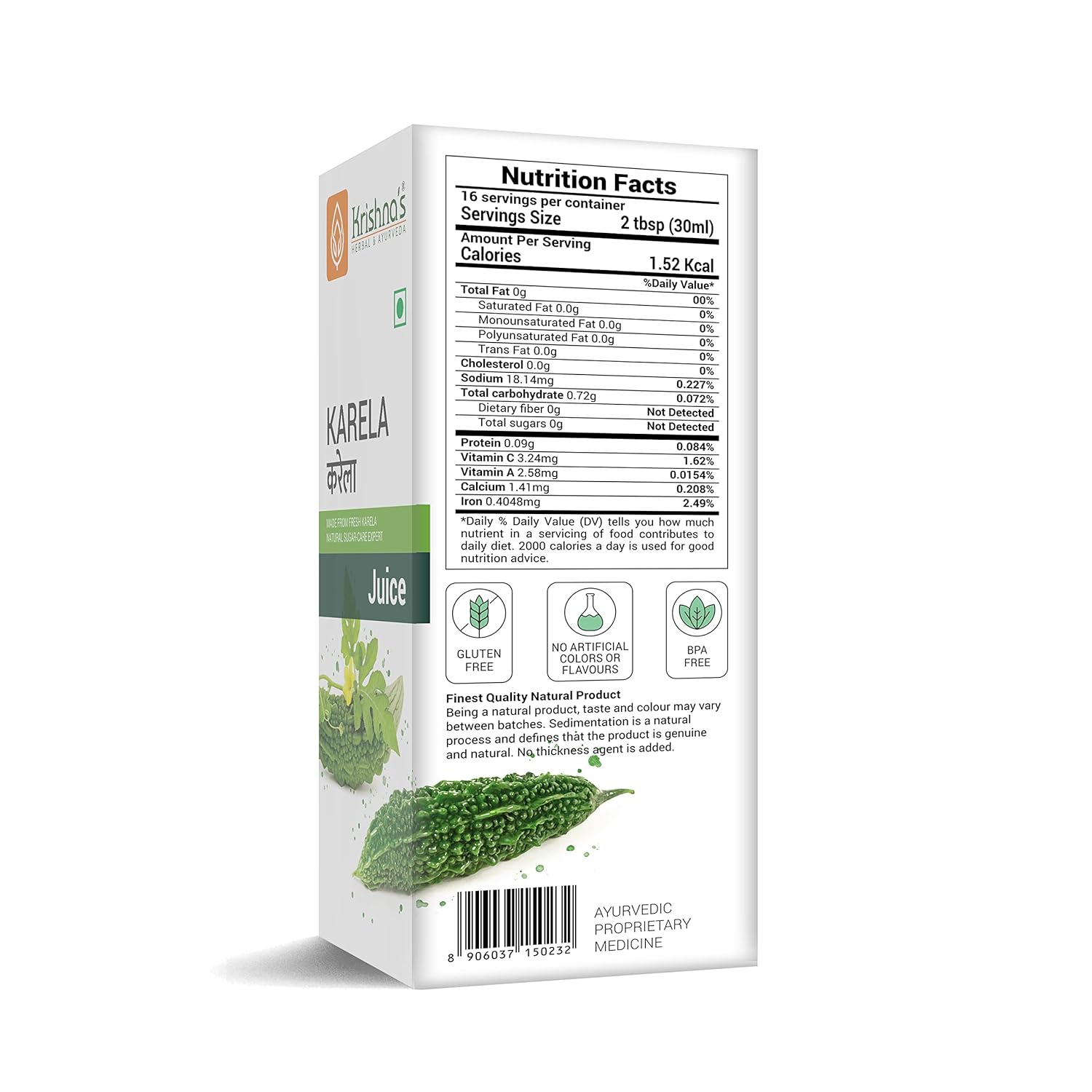 Krishna's Karela Juice - 500 ml | Fresh Karela | Ayurevedic Formulation to maintain Sugar Level | Enriched with Vitamin C - Vitamin A | Sugar free Juice with No Added Color or Flavour