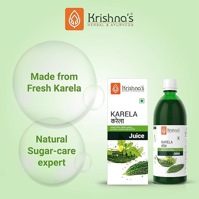 HomeHealth & PersonalDiet & NutritionHealth DrinksKrishna's Karela Juice - 500 ml | Fresh Karela | Ayurevedic Formulation to maintain Sugar Level | Enriched with Vitamin C - Vitamin A | Sugar free Juice with No Added Color or Flavour