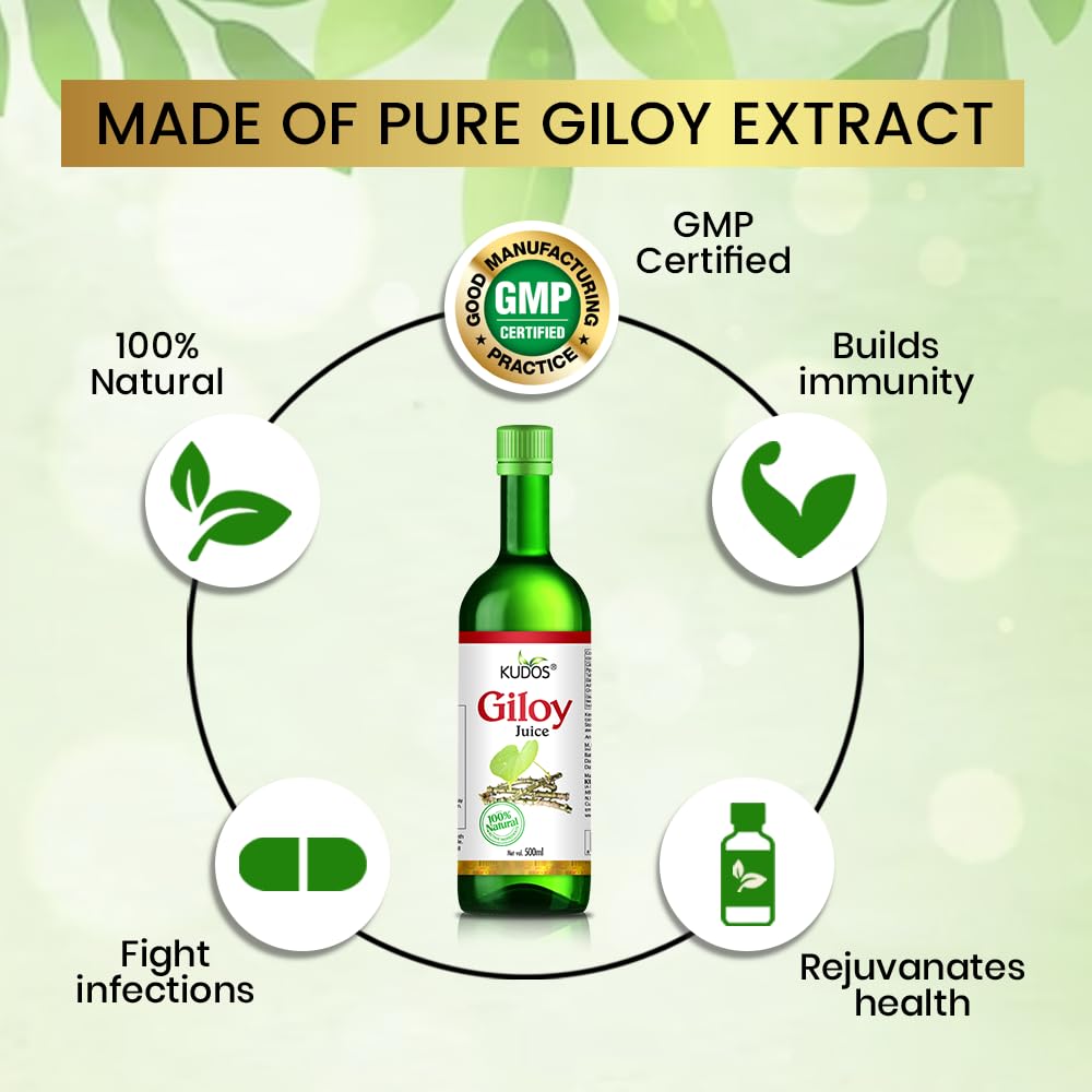 Kudos Giloy juice has anti-inflammatory benefits that help reduce respiratory problems like frequent coughs colds and tonsils.