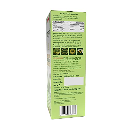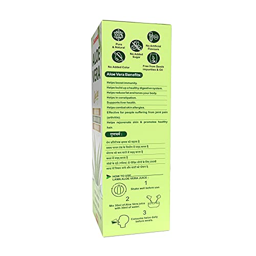 Lama Aloe Vera Juice [ with pulp] is made from pure natural premium quality organic Aloe Vera. This Aloe Vera juice helps to build a healthy digestive system and improves immunity to protect the body from common infections. Helps combat skin allergies. Helps reduce fat and tones your body.