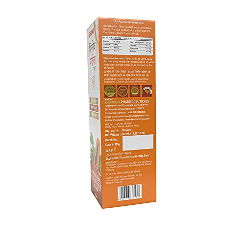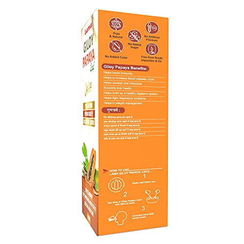 Lama Giloy Papaya Juice | Helps Boost Immunity | Digestive Heath Care | No Added Sugar | Pure & Natural - 500 ML
