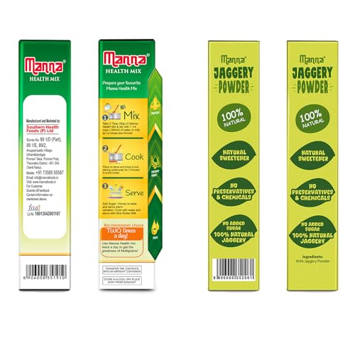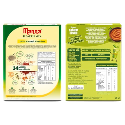 HomeHealth & PersonalDiet & NutritionHealth DrinksManna Health Mix & Manna Jaggery Powder Combo Pack | 100% Natural, Zero Added Sugar, No Preservatives, No Chemicals. 600g Health Mix, 350g Jaggery Powder