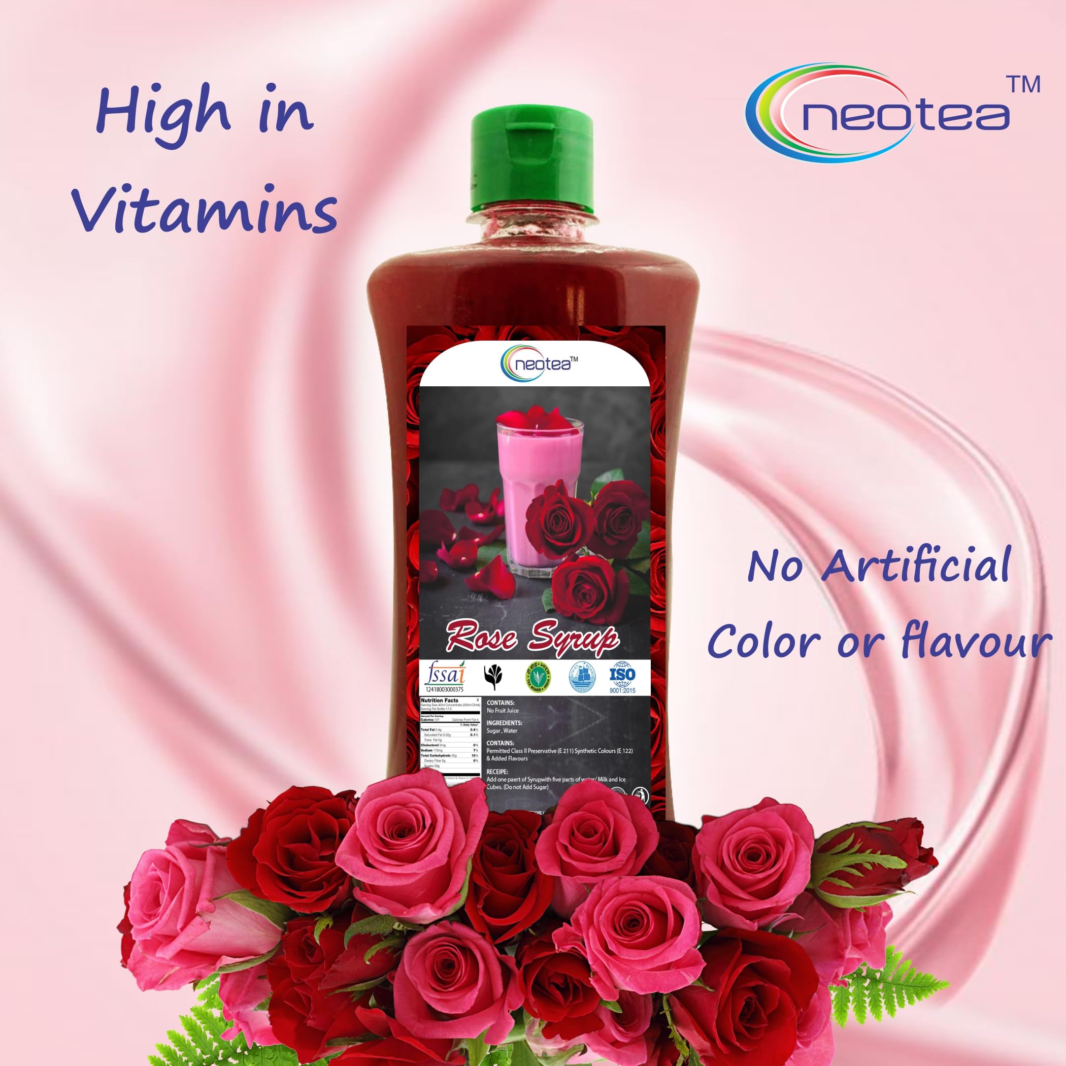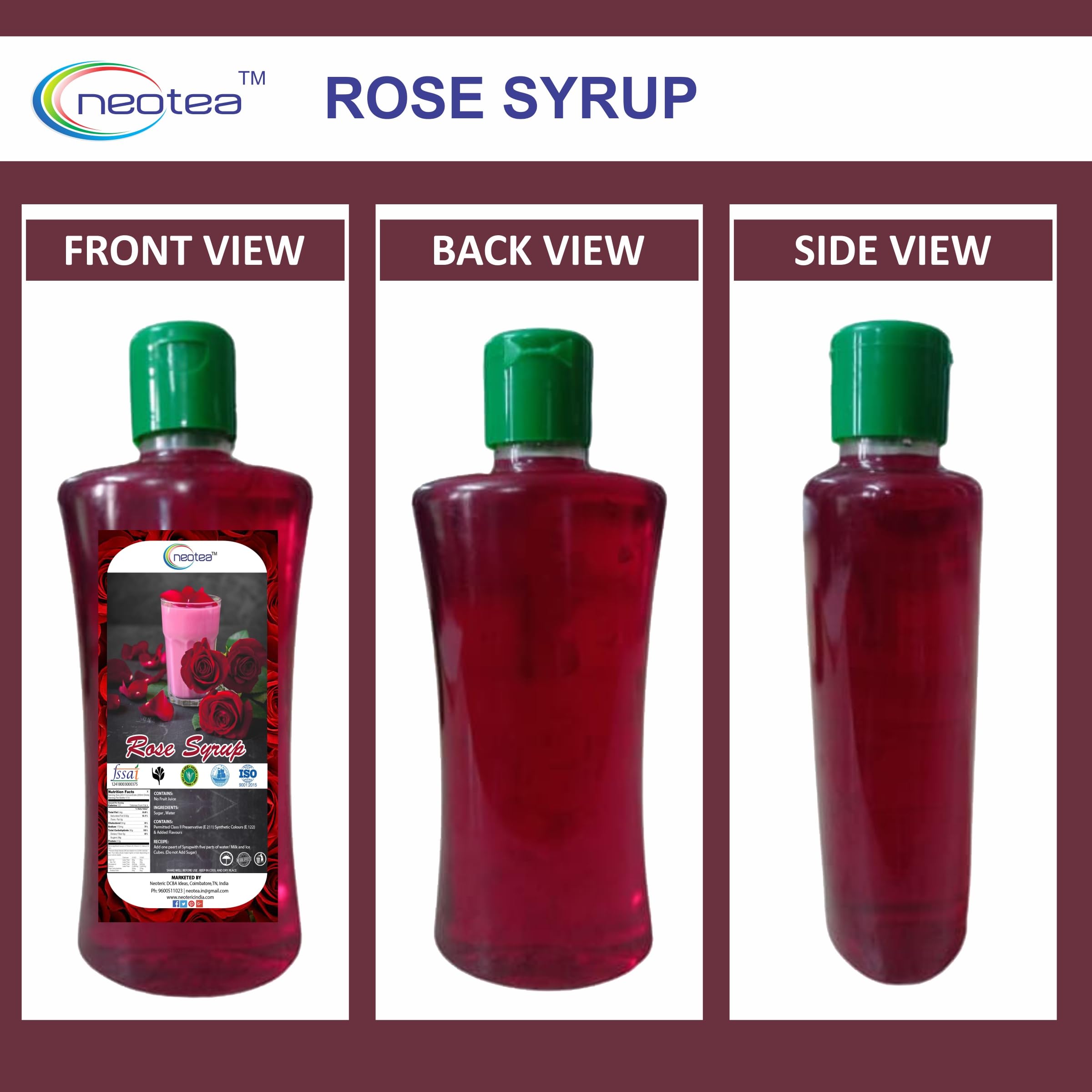Neotea Rose Syrup (250ml) is a premium natural syrup crafted to add a delicate floral flavor to your favorite drinks and desserts. Made from real rose essence this syrup offers a refreshing and aromatic taste perfect for enhancing cocktails mocktails juices smoothies and even desserts. Versatile & Flavorful: Neotea Rose Syrup is ideal for adding a unique floral touch to a wide range of beverages. Whether you're mixing up cocktails refreshing mocktails or simply sweetening your juices and smoothies this syrup provides a perfect balance of sweetness and floral essence. Itâs also great for flavoring desserts like cakes ice creams and pastries. Natural Ingredients: Enjoy the purity of Neotea Rose Syrup made without any artificial colors preservatives or additives. Each bottle is packed with the natural aromatic taste of real rose offering a wholesome and authentic flavor experience. Perfect for Any Occasion: Whether youâre hosting a party enjoying a relaxing evening at home or experimenting with new recipes Neotea Rose Syrup is your go-to ingredient for adding a refreshing and aromatic touch to every sip and bite. Key Features: Natural Floral Flavor: Made with real rose essence for a true aromatic floral taste. No Artificial Additives: Free from artificial colors preservatives and chemicals for a pure and natural flavor. Versatile: Perfect for flavoring cocktails mocktails juices smoothies desserts and more. Refreshing & Aromatic: A delicate and refreshing taste that enhances the overall drinking and eating experience. Convenient 250ml Bottle: Perfect size for everyday use or for hosting gatherings and parties.