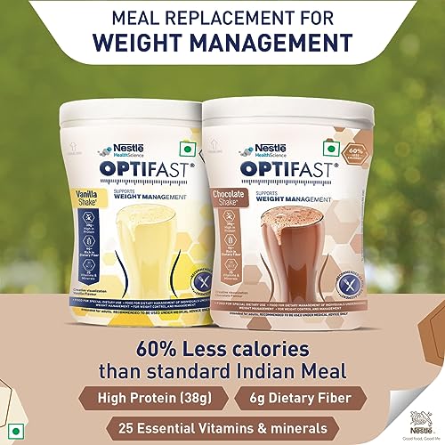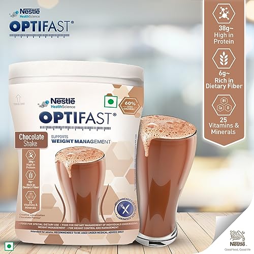 An ideal choice for weight control and management Losing weight is a challenging task and improper weight management could lead to adverse health issues. Out of multiple factors a healthy diet plays a vital role in your weight management journey. That's why we bring you Nestle Optifast Weight Management Shake which makes for a perfect choice for weight control and management. Scientifically designed low calorie meal replacement diet Nestle Optifast is a scientifically designed weight management meal replacement diet for the dietary management of individuals undergoing weight management. This diet powder for weight loss comes in a delicious chocolate flavour and contains 60% less calories as compared to a standard Indian meal. This weight management shake is high in protein and rich in fibre and it also contains 25 essential vitamins and minerals which take care of your daily nutrient requirement. Nestle Optifast chocolate shake also comes with low GI value which can improve the blood glucose control. Weight management made easy This Optifast shake is super easy to make and does not take up much time from your busy schedule. From running late to the office in the morning to a quick meal during the day this shake is your go-to solution for a tasty and fulfilling meal replacement diet. So what are you waiting for? Make Optifast powder a part of your weight loss diet and live a healthy lifestyle. Storage Instructions: Tear off the rings. Close the cap tightly after each use. Store in a cool dry and hygienic place. After opening the pouch consume the contents within 4 weeks. **Recommended to replace one or more meals a day with OPTIFAST as directed by your healthcare professional. ^As compared to a sample Indian meal recommended by NIN ICMR.