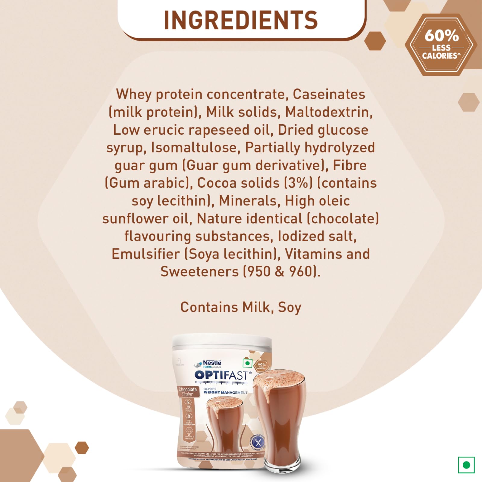 • : Reduce your calorie intake with Optifast shake which helps in successful long term weight management .Low glycemic index can be used by individuals with