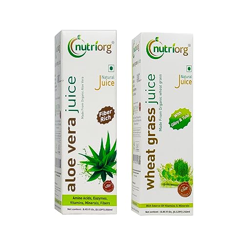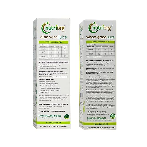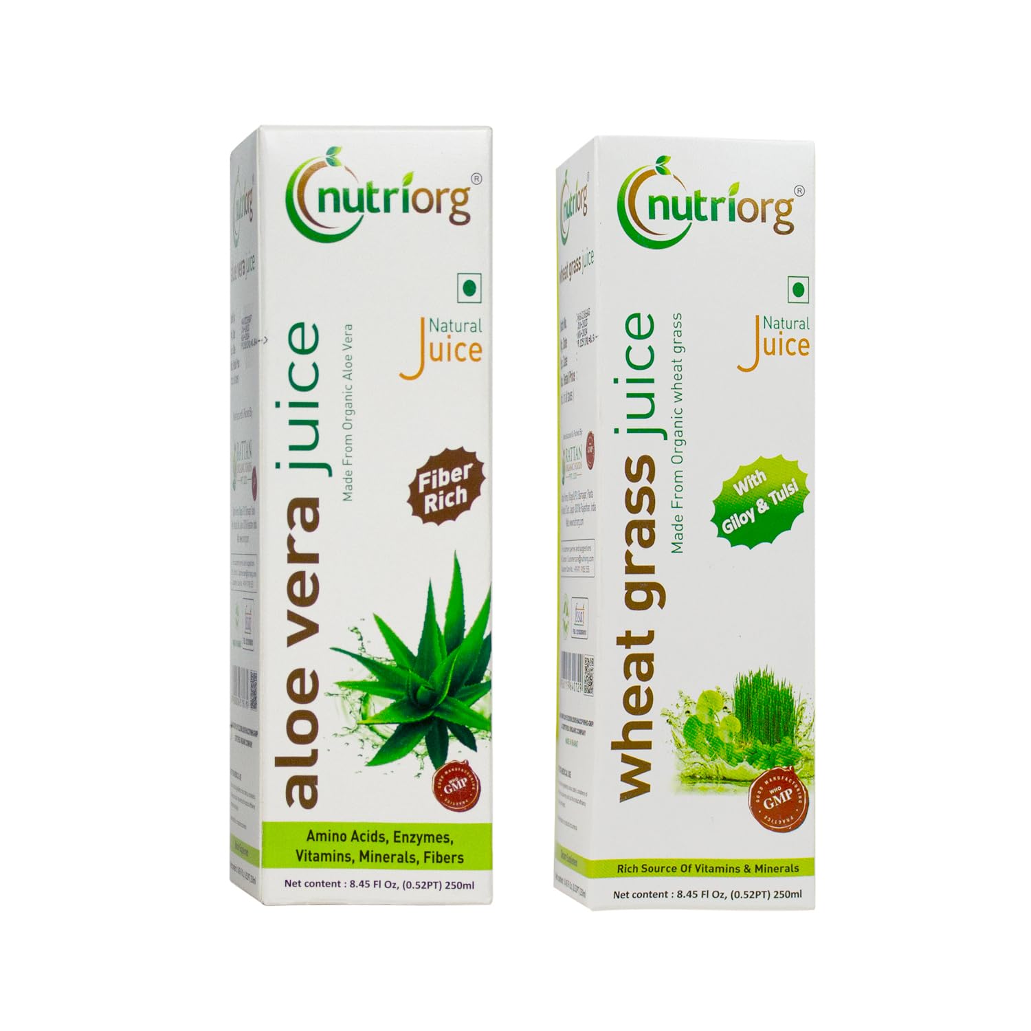 Nutriorg Aloe vera and Wheatgrass Juice, Detoxification,Boosts Immunity (Pack of 2 * 250ml)