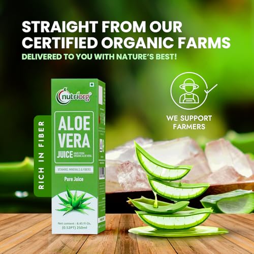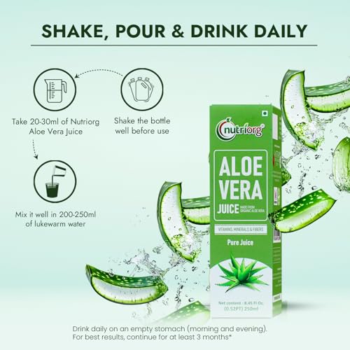 HomeHealth & PersonalDiet & NutritionHealth DrinksNutriorg Aloe Vera Juice 250 ml, Suitable For Healthy Hair & Skin, Detox Juice For Weight Loss, Organic & Natural Juice Made With Cold Pressed Aloe Vera, No Added Sugar