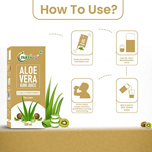 Nutriorg Aloevera with Kiwi Flavour 500 ml, Rejuvenates Skin and Hair, Natural Juice for Skin Care,No Added Sugar (1L)