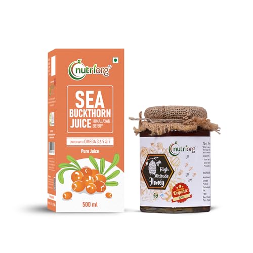 Nutriorg Seabuckthorn Juice 500Ml & Organic High Altitude Honey 500G | Energy Booster | Good for Skin