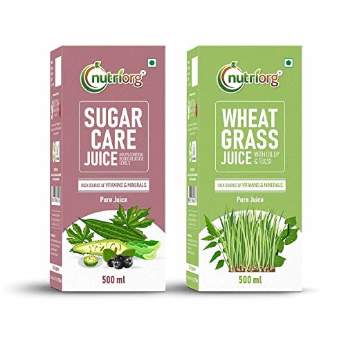 Nutriorg Sugar Care & Wheat Grass Juice 500 ml (Combo Of 2) | | Detoxification | Sugar Control Juice | Immunity Booster