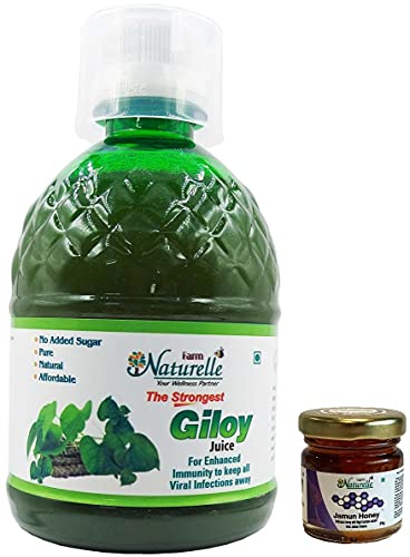 Farm Naturelle 100 % Pure Herbal Giloy Juice| Enhances Body Immunity & Good For Skin And Blood/ No Added Sugar- 400ml With 55g Cinnamon Honey