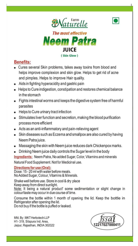 Farm Naturelle Neem Patra Herbal Juice Box - 100 % Pure & Natural (Pack of 4) - 1600 ML (54.10oz)