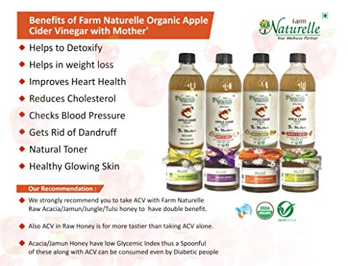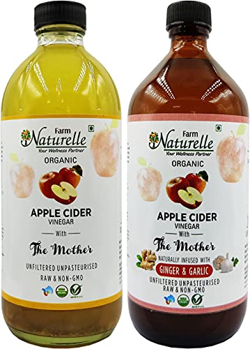 Farm Naturelle Organic Apple Cider Vinegar with Mother and Apple Cider Infused Ginger and Garlic (500 ml x 2 ) Pack of 2