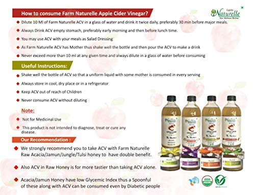 • Organic Apple Cider Vinegar(ACV) with Mother(Infused with Ginger and Turmeric) is 100% Natural Raw Unfiltered and Unpasteurized. It contains ‘Mother’ which is a proof of Unfiltered Vinegar