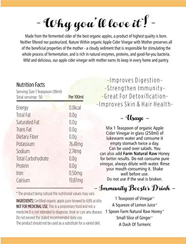 • ACV with and Fenugreek helps in relieving burn improving overall and o speeding up the repair of Cells/. Excellent for people. Hundreds of benefits out of in it.Organic ACV with Mother helps in controlling levels and skin health Organic ACV with Mother he