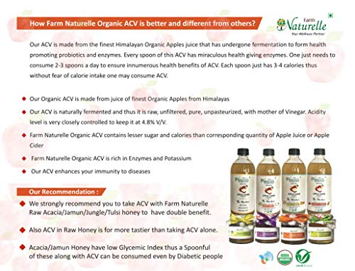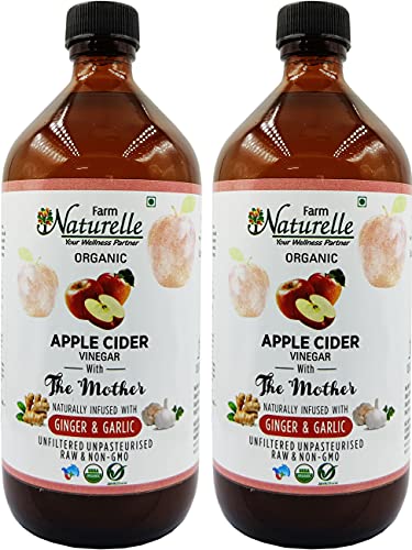 Farm Naturelle Organic Apple Cider Vinegar with Mother and Apple Cider Infused Ginger and Garlic (500 ml x 2 ) Pack of 2