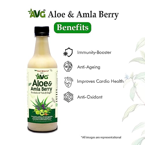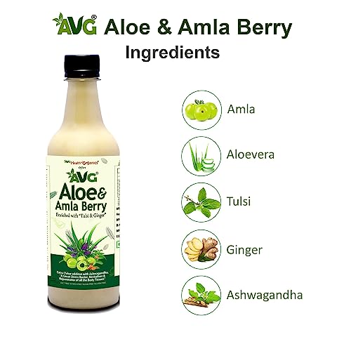 AVG Health Organics Aloe & Amla Berry Aloevera & Amla Juice with Ashwagandha Immunity Booster Natural Detox Sugar Free 500ML | Pack of 2