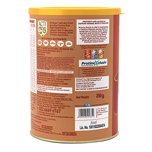 Protinex Tasty Chocolate is a vegetarian ready to serve beverage mix that helps bridge the gap of nutrients from diet of Indian Adults. Protinex Tasty Chocolate is an adult nutritional drink mix that is clinically proven to provide 34% higher immuno boosters that help build immunity# 12. Protinex contains 22 essential vitamins and minerals including 10 immuno nutrients³ that help build immunity build strength and provide energy. Protinex consists of nutrients that help in building bone strength growth & maintenance of muscle mass improving metabolism formation of blood cells and maintaining fluid & electrolyte balance**. Available in chocolate flavor Protinex easily makes its place in your everyday diet plan and with zero added sugar* and low fat it is suitable for daily consumption. It can be taken with milk or water.