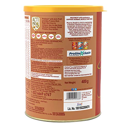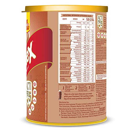 Protinex Tasty Chocolate is a vegetarian ready to serve beverage mix that helps bridge the gap of nutrients from diet of Indian Adults. Protinex Tasty Chocolate is an adult nutritional drink mix that is clinically proven to provide 34% higher immuno boosters that help build immunity# 12. Protinex contains 22 essential vitamins and minerals including 10 immuno nutrients³ that help build immunity build strength and provide energy. Protinex consists of nutrients that help in building bone strength growth & maintenance of muscle mass improving metabolism formation of blood cells and maintaining fluid & electrolyte balance**. Available in chocolate flavor Protinex easily makes its place in your everyday diet plan and with zero added sugar* and low fat it is suitable for daily consumption. It can be taken with milk or water. There are no documented side effects of Protinex original however it is not recommended for people allergic to peanut.