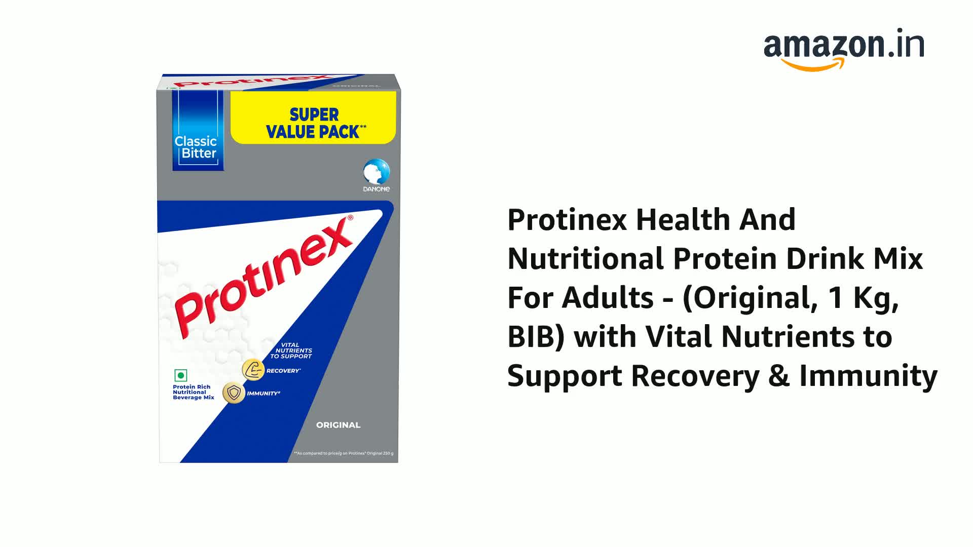 Protinex Original is a vegetarian nutritional beverage mix that should be consumed as part of a healthy lifestyle for recovery from illness. It contains a unique hydrolyzed protein formulation that is easy to digest and helps in faster recovery from illness and injuries. It comes with high protein content of 34% which is the highest in the daily nutritional beverage mix category. It also contains vital nutrients that help in building immunity. Protinex has a rich legacy of over 65 years. Protein makes up about 50% of muscles & bones in our body and our body cannot store protein â hence it needs to be consumed daily! Protinex helps in bridging this gap of protein and other essential nutrients in regular Indian Adult diets.
