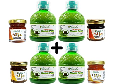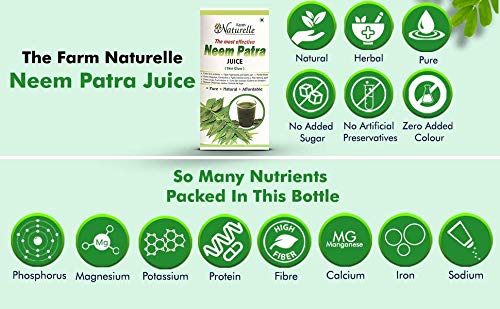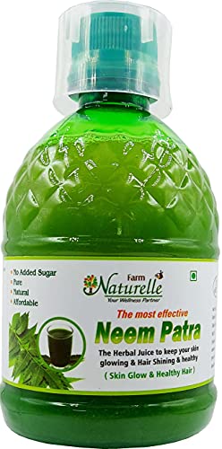 Neem Juice has several health benefits. Since Neem is beneficial for the body skin and hair the Farm Natural Neem Patra Juice cleans blood to take care of Pimples and Acne. It increases Blood Flow through subcutaneous skin thus helps in improving Skin Texture reduction in wrinkles and increase in immunity. The toxins from the system are flushed out which helps in improving liver functioning and digestion. Drinking it daily controls the Sugar level in the body. Massaging the skin with Neem juice reduces dark marks on skin. For added benefits have Herbal Lemon Tea Skin Glow and 5 fruit MOP Tea and also use Aloevera and Amla juice. Vitamin C and Aloevera gives added benefits.
