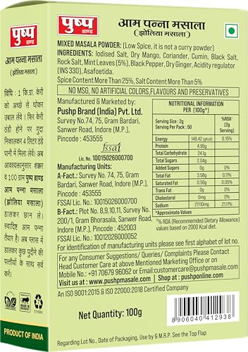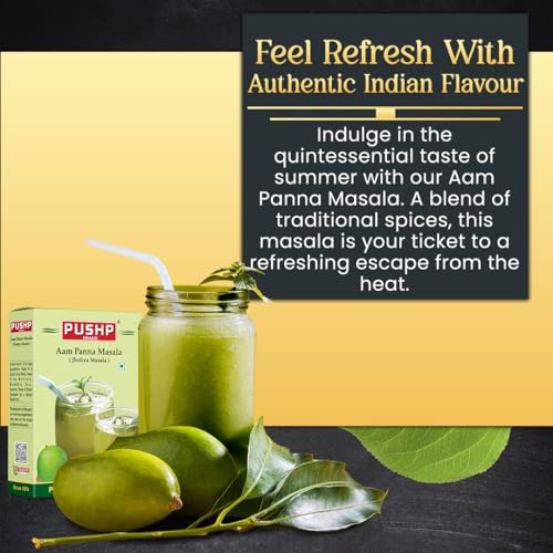 Many Indian homes enjoy Aam Panna during hot summers. Pushp Aam Panna Masala makes it easy to prepare this cooling drink at home. This mix is useful in any kitchen. It helps make tasty and cooling mango drinks quickly. Use it to make a refreshing summer cooler that helps beat the heat and provides relief from the sun. Our Aam Panna Masala is made with quality ingredients without any harmful additives to keep its real taste. We make sure each batch of masala maintains its flavor so you always get good taste. Want to enjoy refreshing Aam Panna anytime? Just use Pushp Aam Panna Masala and make a drink your family will enjoy! Try other Pushp products too - Jal Jeera Masala Pani Puri Masala Chaat Masala Pav Bhaji Masala Achar Masala.