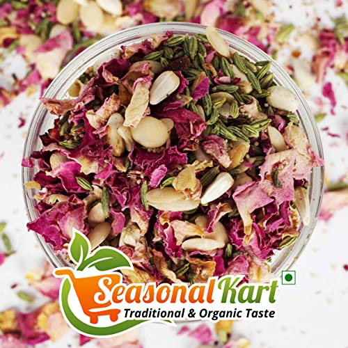 Seasonal Kart Fresh And Natural Whole Dry Fruits Thandai Masala |Organic & Natural No Added Preservative Essence And Color | Perfect Summer Drink| Dry Fruits Flavoured Thandai Masala| Thandai whole Dry Fruit Masala Seasonal Kart Traditional Thandai Masala is all that you need this Holi and Summer. Rejuvenate yourself with the freshness of rose the fragrance of cardamom and the richness of dry fruits. An in-house recipe that will make you ask for more. Our Thandai Masala does not contain sugar or any other sweetener you can add a sweetener as per your liking. It is made fresh on order at home. It is preservative and additive-free. How to make the perfect Thandai? Step 1: Add 1.5 tablespoon of our Thandai Masala to 200ml cold milk Step 2: Mix in a blender for 10-15 seconds Step 3: Filter in a strainer Step 4: Serve with ice and enjoy Why Seasonal Kart Thandai? Sugar-Free 100% homemade No Preservatives 60% Dry Fruits Made on-demand in small batches Healthy and Fresh Finest quality ingredients Seasonal Kart's Promise: 100% Homemade No Preservatives Finest Quality Ingredients Our Thandai Masala is made fresh in small batches using the finest quality ingredients and are 100% homemade. We ensure all hygiene measures are taken in the making process and do not compromise on the quality of the products thus guaranteeing you 100% purity. The recipe we follow is our in-house recipe and that is how we bring to you traditional Indian thandai. Ingredients: Khus Khus (Poppy Seeds) Almonds Cashew Nuts Pistachios Muskmelon Seeds Cardamom Black Pepper Poppy Seeds Fennel Seeds Rose Petal (Makes 2 liters 10 glasses) SHELF LIFE: 90 Days