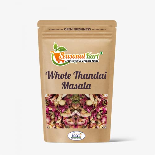 Seasonal Kart Fresh And Natural Whole Thandai Masala |Organic & Natural No Added Preservative Essence And Color | Perfect Summer Drink| Flavoured Thandai|Thandai whole Masala Seasonal Kart Traditional Thandai Masala is all that you need this Holi and Summer. Rejuvenate yourself with the freshness of rose the fragrance of cardamom and the richness of dry fruits. An in-house recipe that will make you ask for more. Our Thandai Masala does not contain sugar or any other sweetener you can add a sweetener as per your liking. It is made fresh on order at home. It is preservative and additive-free.How to make the perfect Thandai? Step 1: Add 1.5 tablespoons of our Seasonal Kart Thandai Powder to 200ml cold milk Step 2: Mix in a blender for 10-15 seconds Step 3: Filter in a strainer Step 4: Serve with ice and enjoy Why Seasonal Kart Thandai?Sugar-Free 100% homemade No Preservatives 60% Dry Fruits Made on-demand in small batches Healthy and Fresh Finest quality ingredients Seasonal Kart's Promise: 100% Homemade No Preservatives Finest Quality Ingredients Our Thandai Masala is made fresh in small batches using the finest quality ingredients and are 100% homemade. We ensure all hygiene measures are taken in the making process and do not compromise on the quality of the products thus guaranteeing you 100% purity. The recipe we follow is our in-house recipe and that is how we bring to you traditional Indian thandai.Ingredients: Khus Khus (Poppy Seeds) Almonds Cashew Nuts Pistachios Muskmelon Seeds Cardamom Black Pepper Poppy Seeds Fennel Seed