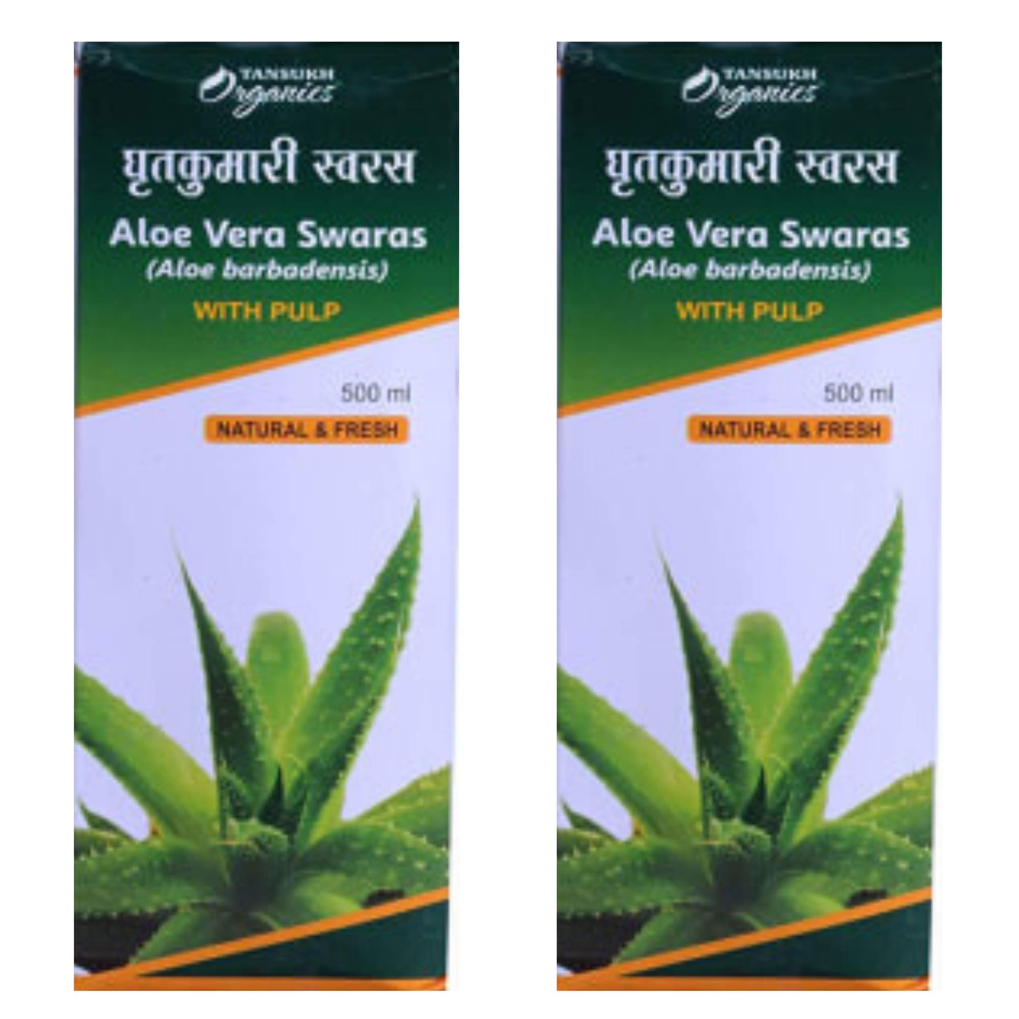 Tansukh Aloe Vera Juice Swaras | Ayurvedic Herbal Juice - Made In India Product | No Added Sugar | 500 ml - Pack of 2 | 500ml X 2 = 1 litre