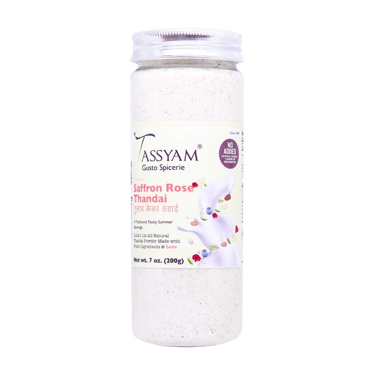 Tassyam Saffron Rose Thandai 200g | All Natural with Badam Pista Kaju & Seeds Shardai [India's First - No Colours Flvouring substances or Preservatives]
