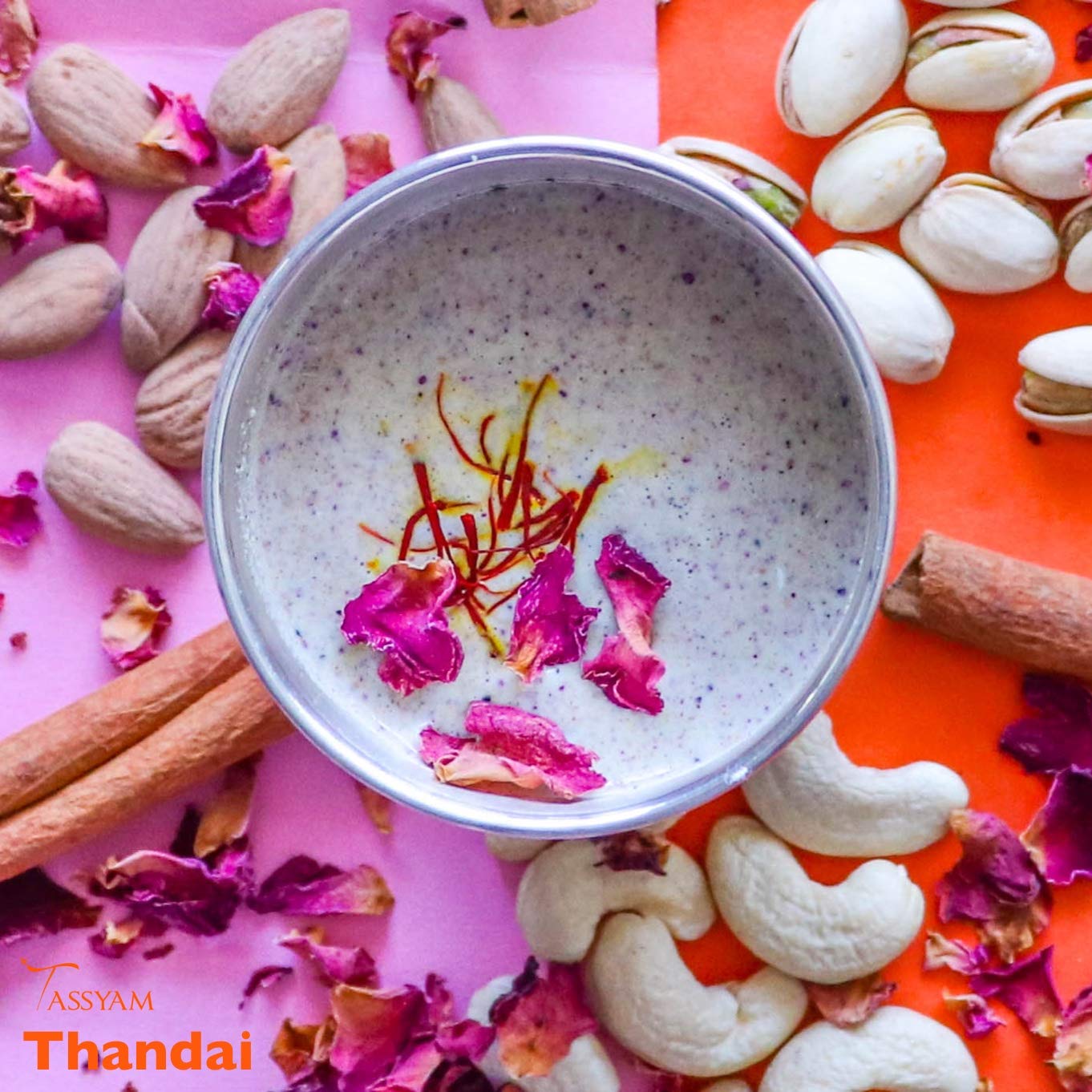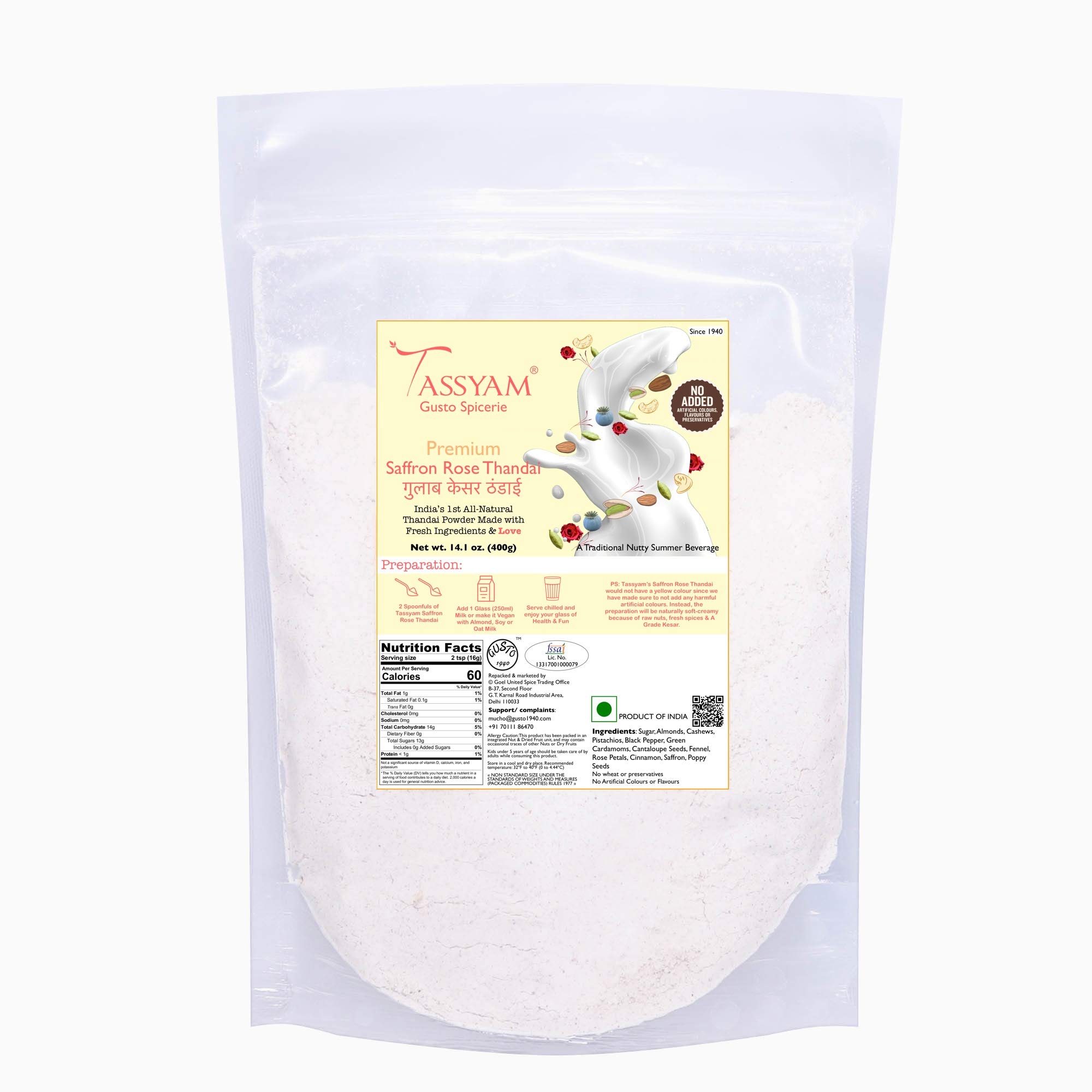 Tassyam Saffron Rose Thandai 400g Refil | All Natural with Badam Pista Kaju & Seeds Shardai [India's First - No Colours Flvouring substances or Preservatives]