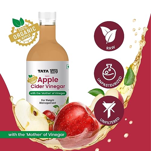 Tata 1mg Organic Apple Cider Vinegar with the âMother of vinegarâ Help In Healthy Weight Management & Overall Wellbeing is made from fine organic apple fruit. It is packed with goodness of organic apple and live strands of âmother of vinegarâ for extra potency. It is raw unfiltered unpasteurized and contains no artificial colour preservative or flavour. ACV (Apple Cider Vinegar) helps in weight management promotes a healthy digestive system and posesses antioxidant properties. Helps boosts digestion and aids in weight loss. Helps to prevent bloating and gas. Gut nourishment helps in digestive well being. It is made with organic apple that contains the âmother of vinegarâ. Its antioxidant property helps fight free radicals effectively. It is raw unfiltered unpasteurized and organically fermented