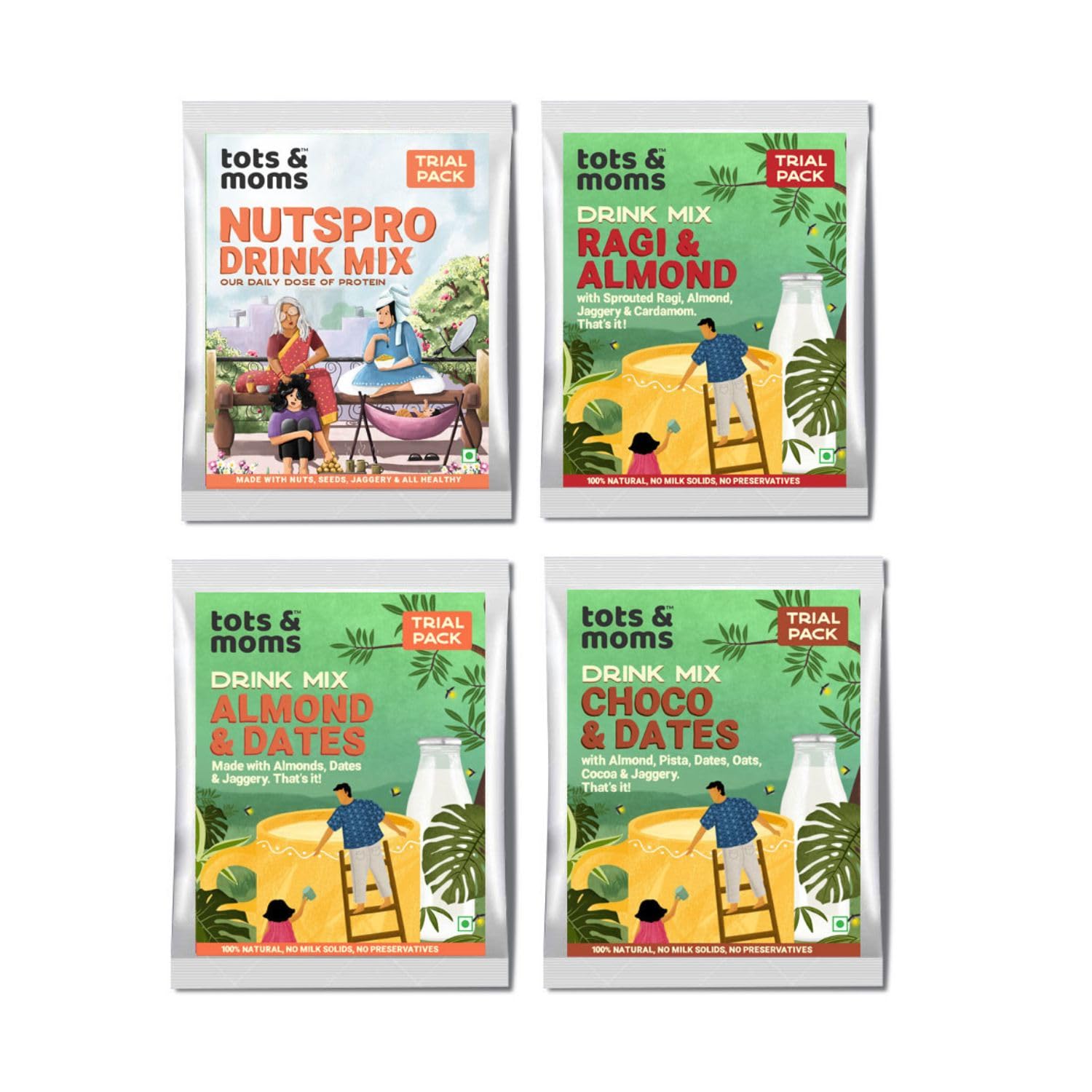 TOTS AND MOMS Drink Mixes Trial Combo | Goodness of Jaggery and Superfoods | 4 Packs