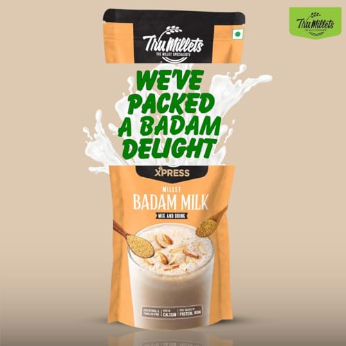 Trumillets Xpress - Healthy Millet Drink - Instant Mix | Nutrition for Adults (Both Men and Women) and Kids- HealthStrength and Energy| Gluten Free | No Preservatives| Badam Milk (Each 200g Pack of 2)