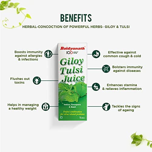 HomeHealth & PersonalDiet & NutritionHealth DrinksVansaar Giloy Tulsi Juice,1L | Benefit of 2-in-1 Immunity Boosters with the power of Giloy and Tulsi | Supports Immune Health | Pure, Natural & 100% Ayurvedic | No Added Sugar (Pack of 2)