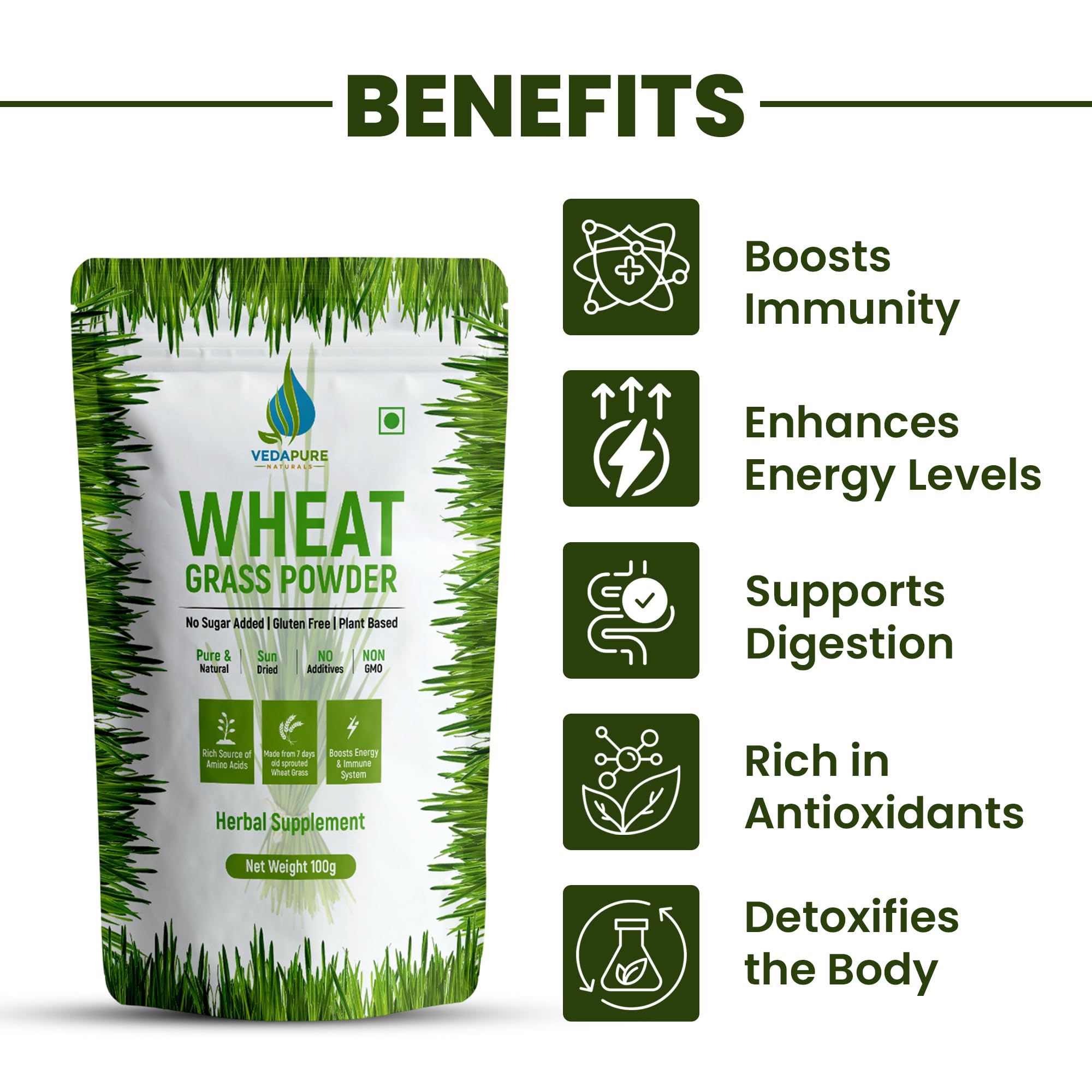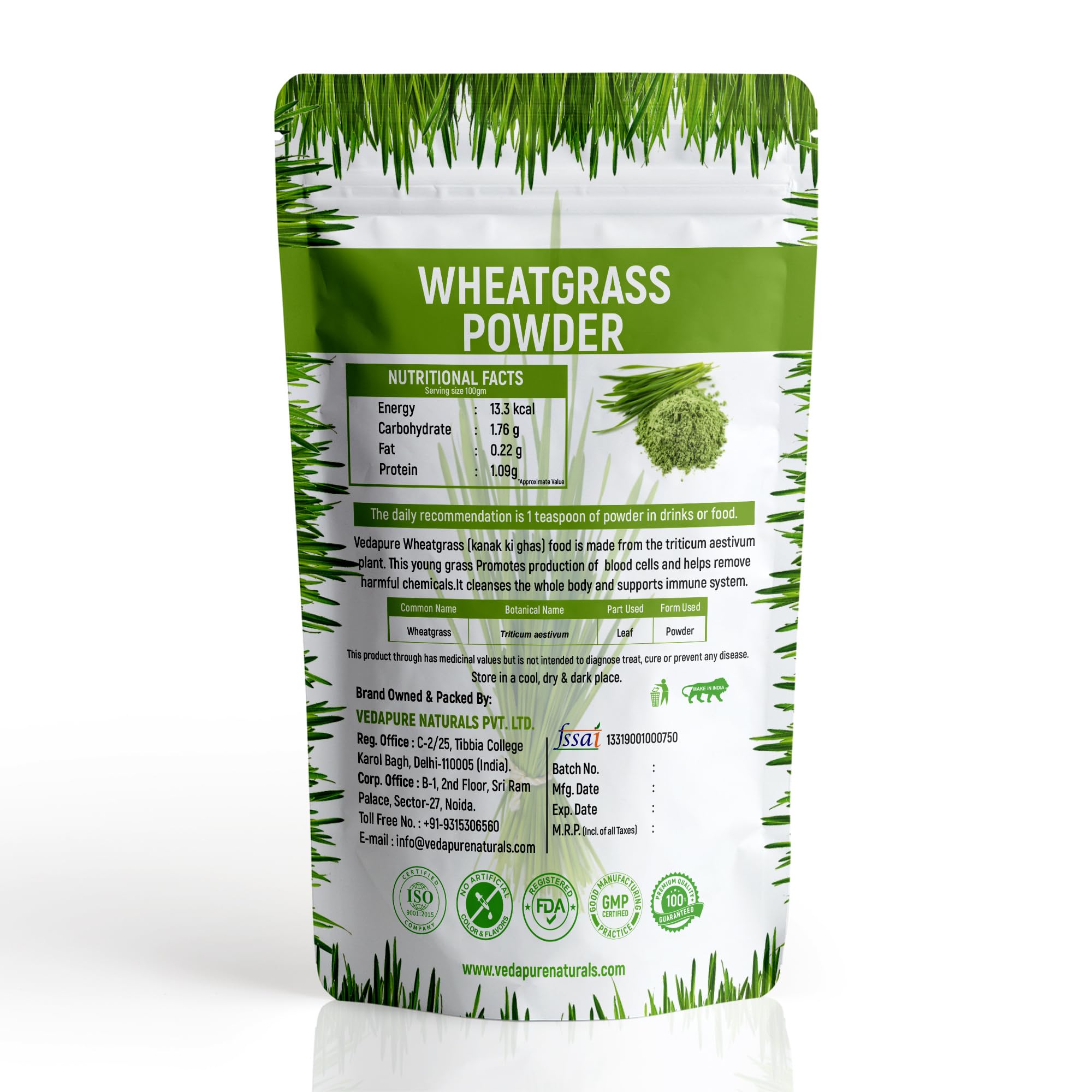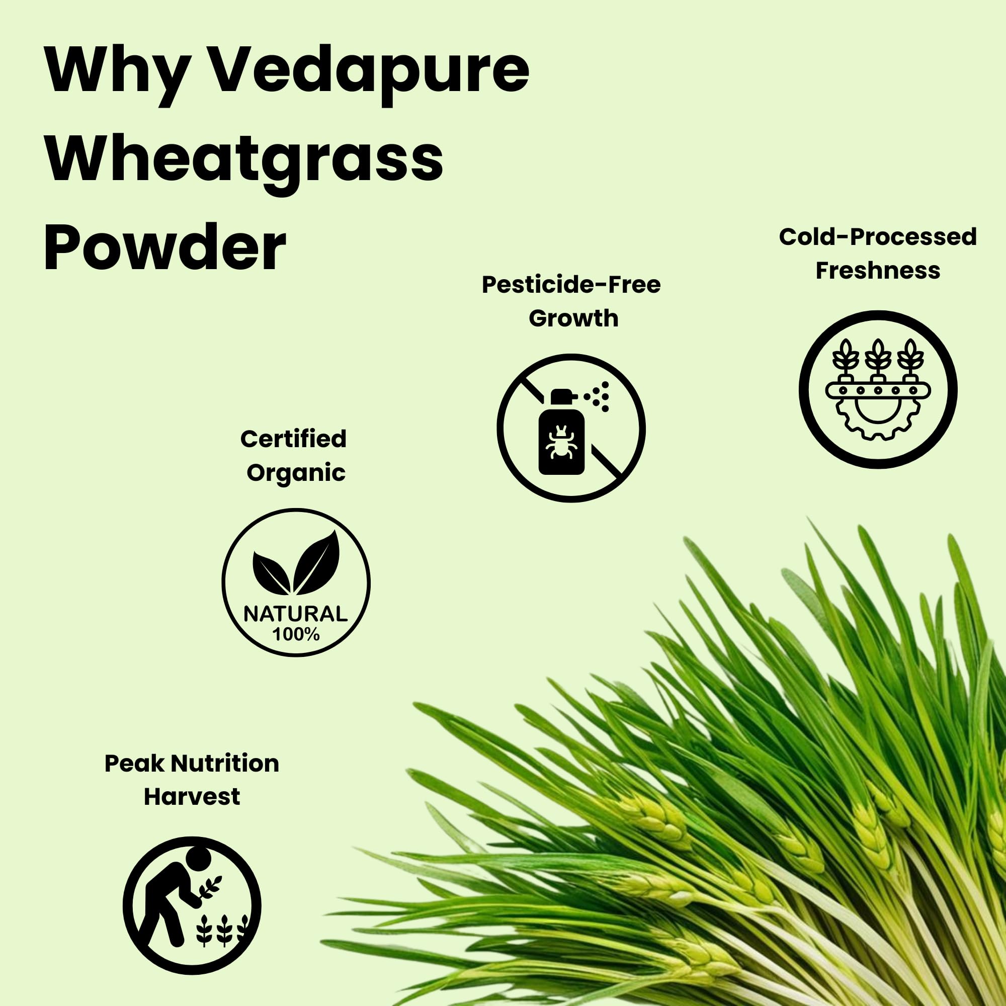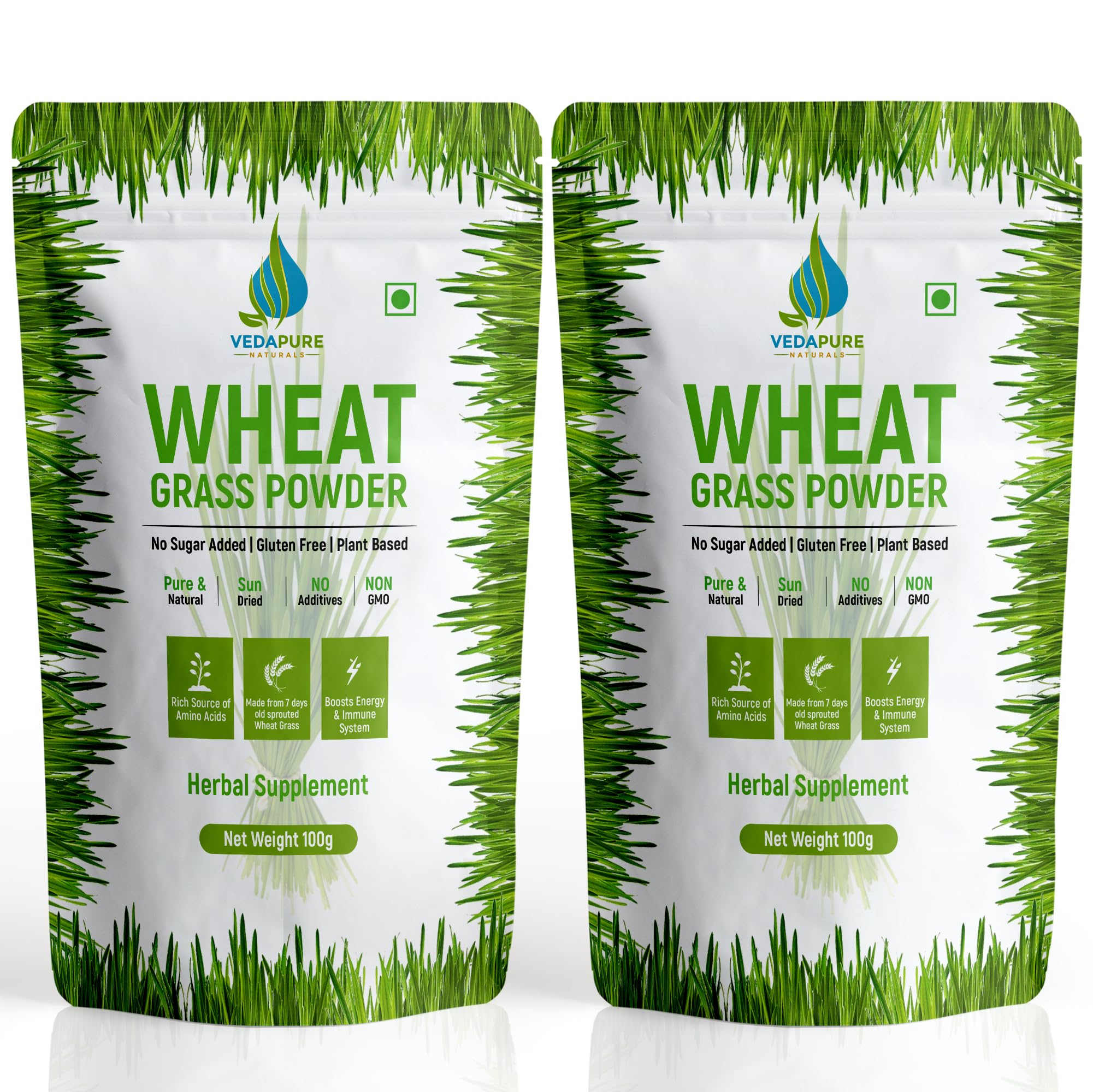 Vedapure Naturals Organic Wheatgrass Powder 100 Gm Non-GMO Vegan Superfood | Antioxidant Energy Detox Immunity Booster Skin Health| (Pack Of 2)