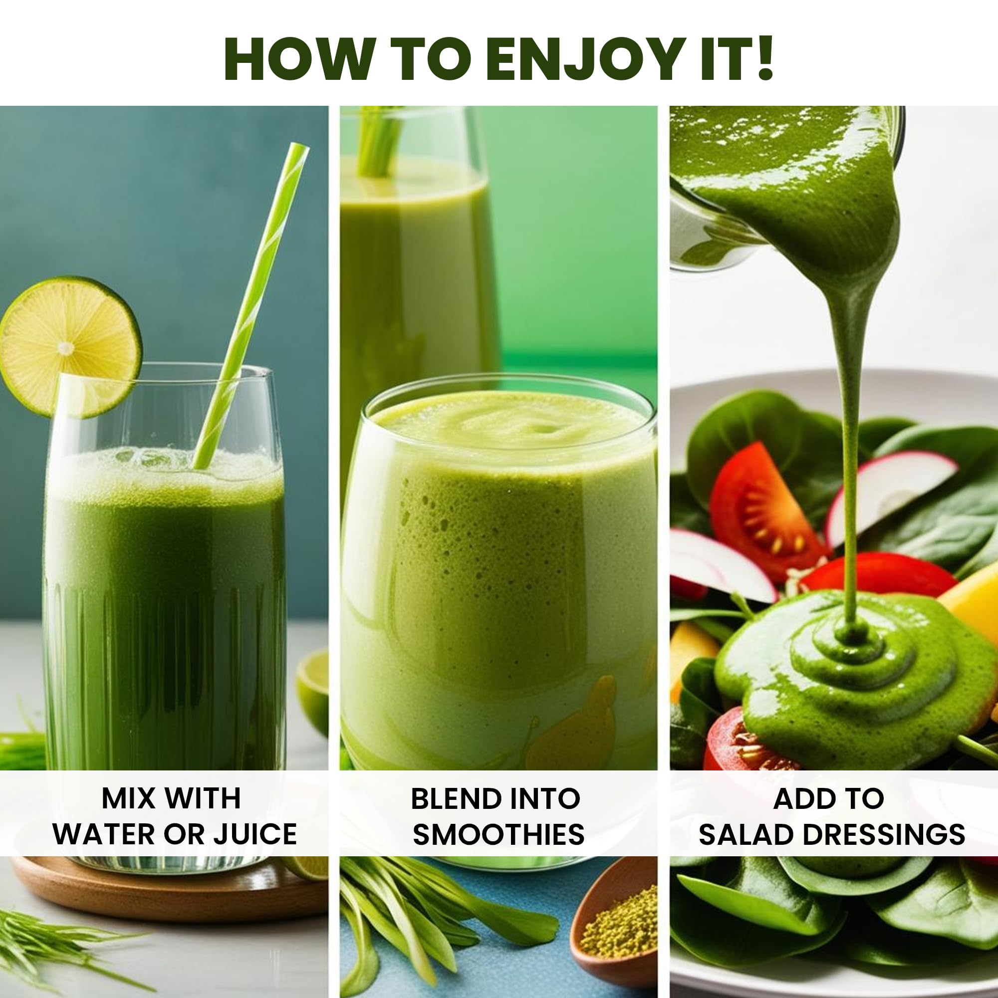 • Detoxification and Cleansing: This wheatgrass powder is renowned for its high chlorophyll content which acts as a natural detoxifier. It helps cleanse your liver blood and digestive system eliminating harmful toxins and heavy metals from your body. Regula